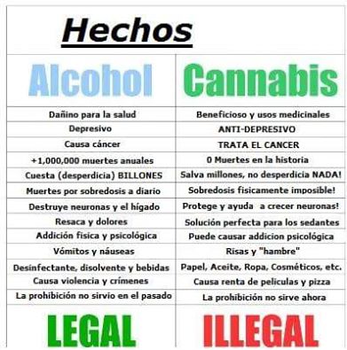 "Me parece absurdo poder comprar tequila o ginebra en un supermercado y que la marihuana sea ilegal", escribía Pablo Iglesias en Twitter. La comparación con otras drogas consideradas "blandas", como el alcohol o el tabaco, es uno de los argumentos esgrimidos a favor de la legalización. "Para la Organización Mundial de la Salud, la nicotina es mucho más adictiva que el cannabis", explica el médico del SEIC. Cànaves añade que "si miramos el nivel de muertes o consecuencias negativas (violencia, accidentes...) vinculados al alcohol o al tabaco son mucho más altos que los del cannabis".